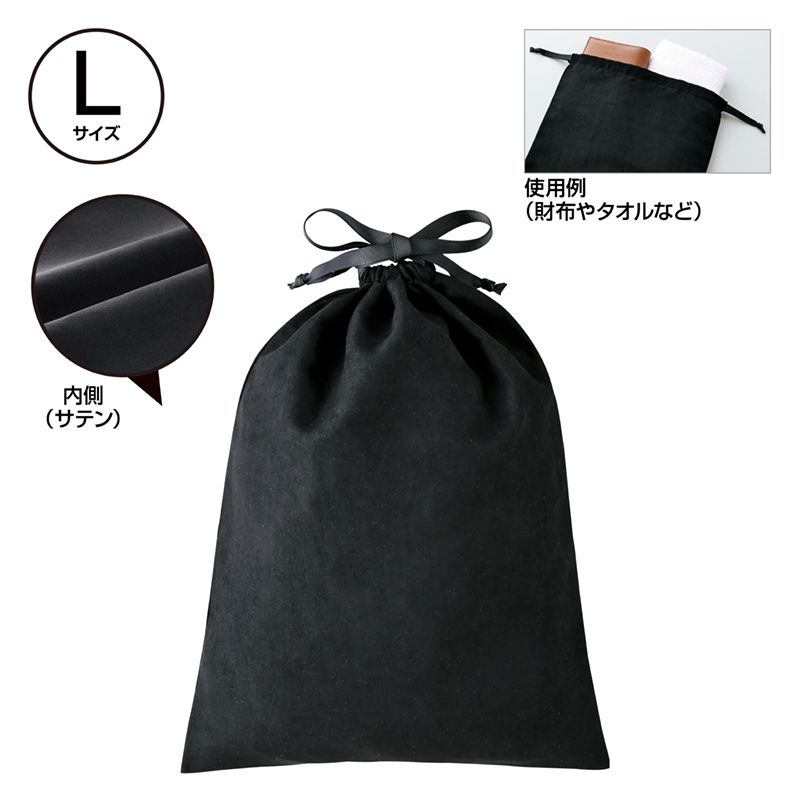 スウェードスタイル巾着(L)(ブラック)