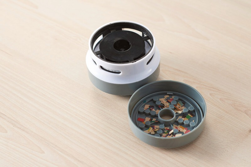 コードレス仕様でデスク周りのゴミ取りに便利。 吸引ノズル付きで細かな箇所も掃除可能。 ワンタッチでゴミ捨てもできるお手軽さが魅力。
