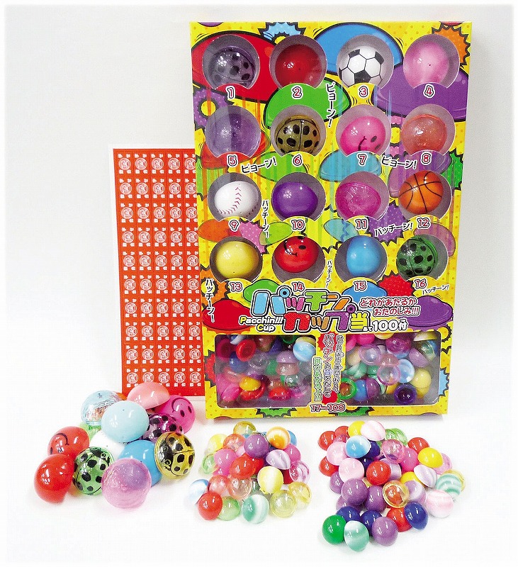 パッチンカップ(大)・・・16個/パッチンカップ(小)・・・84個/クジ紙・・・1シート