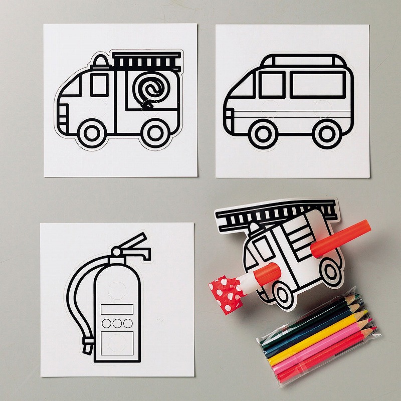 ぬりえ台紙4枚/色えんぴつ5本/巻取り1本
