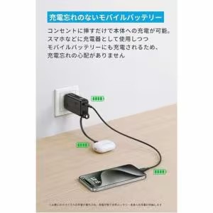 アンカー A1636N11 モバイルバッテリー Power Bank 5000mAh Type-C直結 USB PD対応 1ポート ブラック、ケーブル一体型 コンセントプラグ付