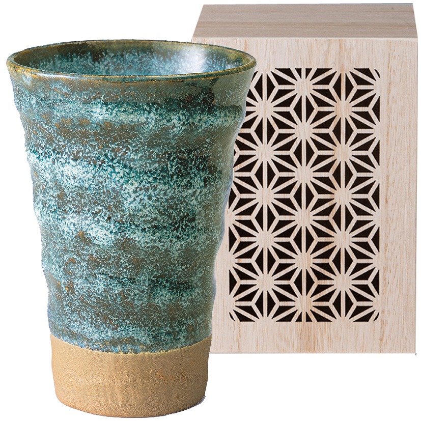 ”ロゴ、名入れ・記念品に!” 『美濃窯変 タンブラー 青 木箱入』
