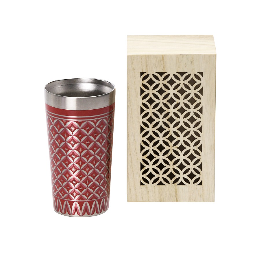 ”ロゴ、名入れ・記念品に!” 『璃庵 真空二層タンブラー 赤 木箱入』