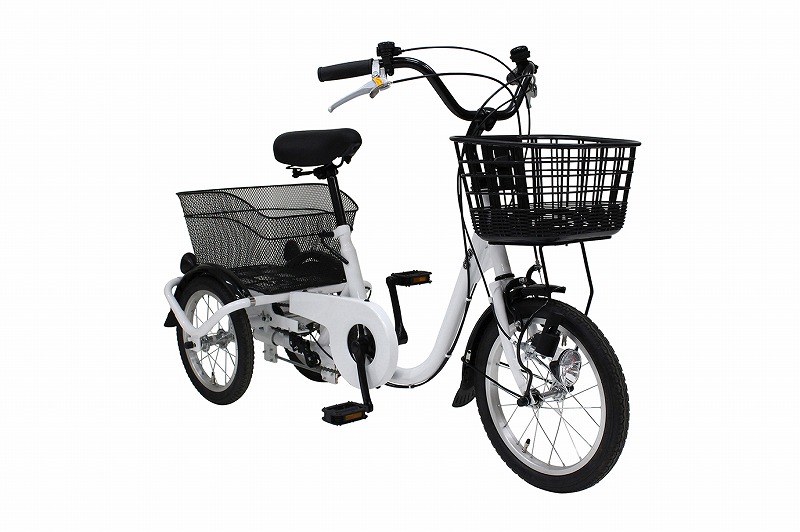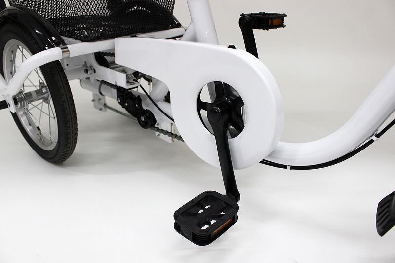従来のサイズより一回り小さい「ロータイプ」。 小柄な方や三輪自転車の大きさに不安がある方に。両足が地面にしっかり着いて安心です。
