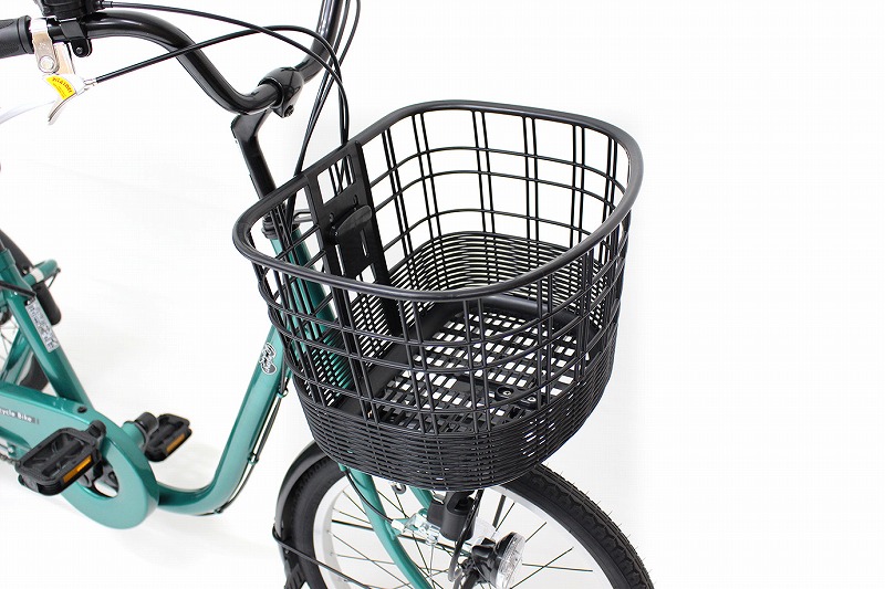 定番の前輪20インチサイズの三輪自転車。前後の大型バスケットは、合わせて70Lの大容量!! 鮮やかなグリーンが魅力的です。