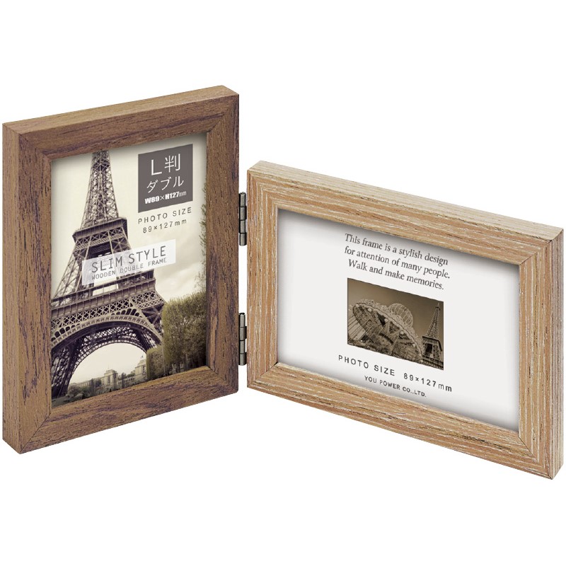 ナチュラルとブラウンのシンプル組み合わせのフレーム。 サービスサイズ2枚セットできます。