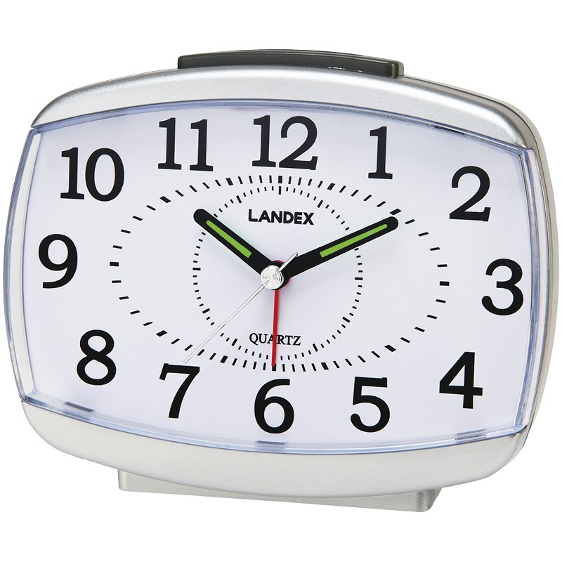 視認性の良い大きな文字盤の目覚まし時計。シンプルなデザインが置く場所を選びません。