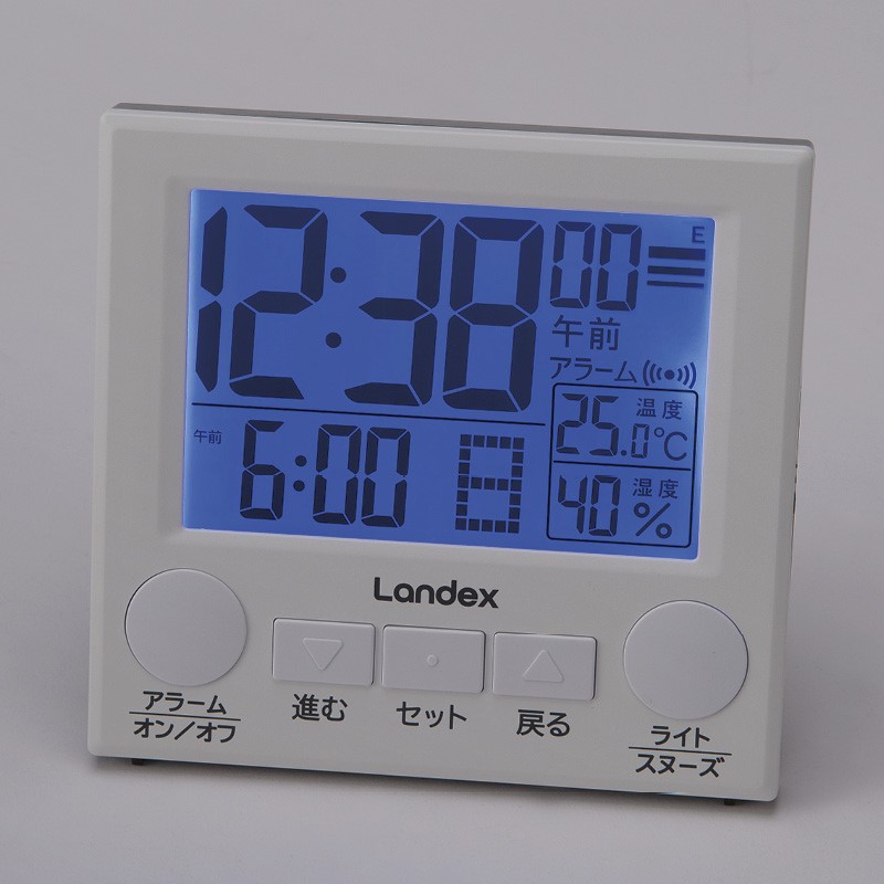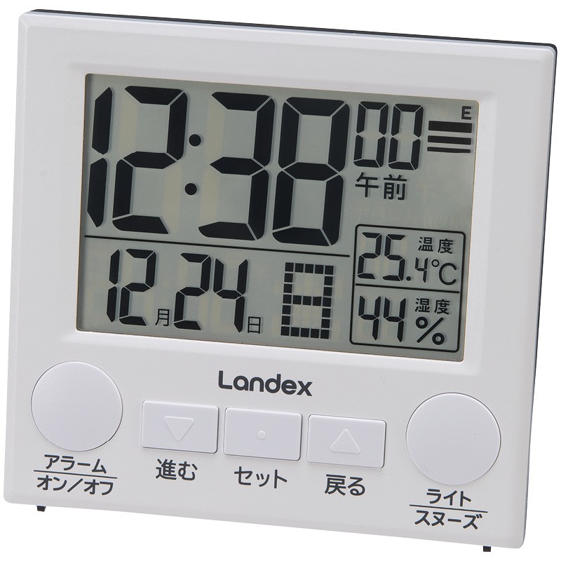 温湿度やカレンダー表示の付いた電波置時計。電池交換お知らせ機能も付いたすぐれものです。