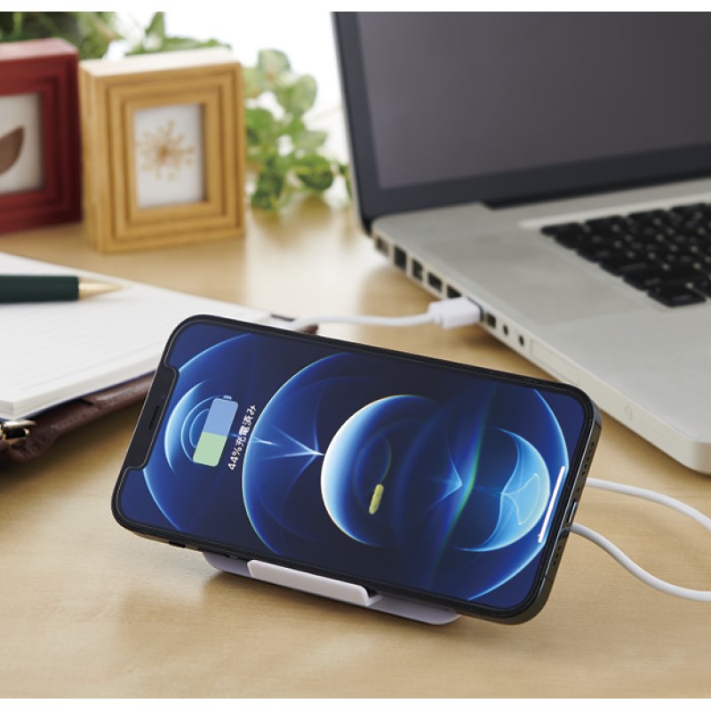 スタンド機能付で充電しながら動画なども楽しめます。 コンパクト設計で、旅行等でも持ち運びラクラク。