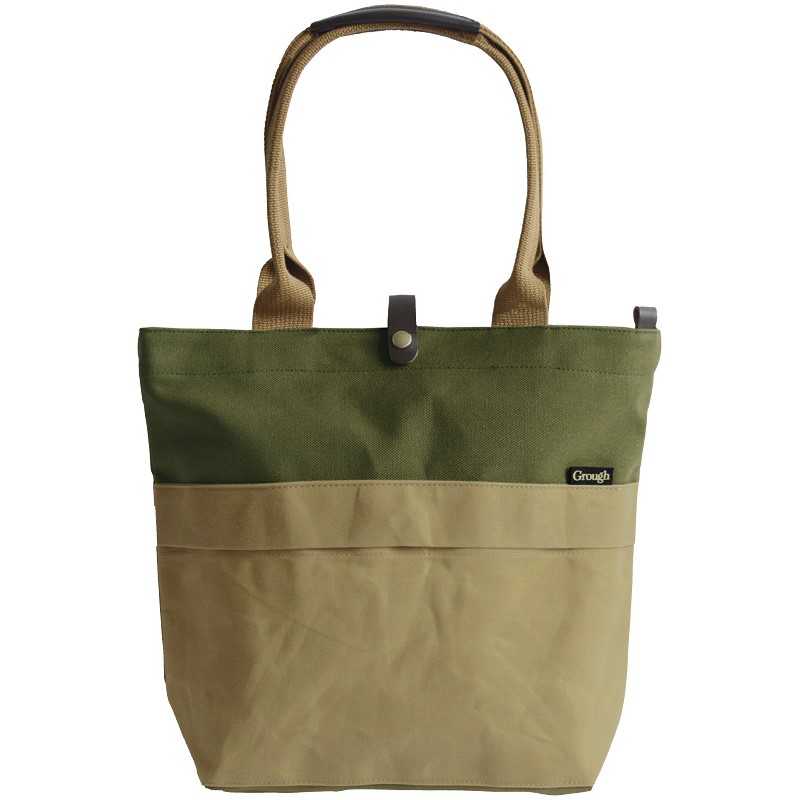 本体:綿(前面ポケット部分のみパラフィン加工)・牛革、持ち手:アクリル