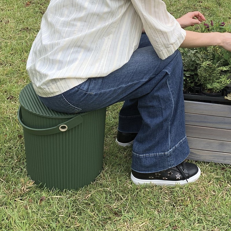 収納BOXとして、簡易スツールとしても使える万能バケツです(耐荷重約150kg)。 土・肥料の保管やガーデニング用品の収納BOXとして使用でき、ハンドルにはホース固定穴もあります。水汲みバケツとしても活躍するので、防災道具入れにも最適です。 GOOD DESIGN賞受賞商品。日本製。