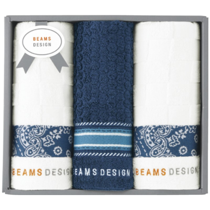 ”記念品 ギフト” 『BEAMS DESIGN チェッカーバンダナ フェイスタオル3P ネイビーブルー』