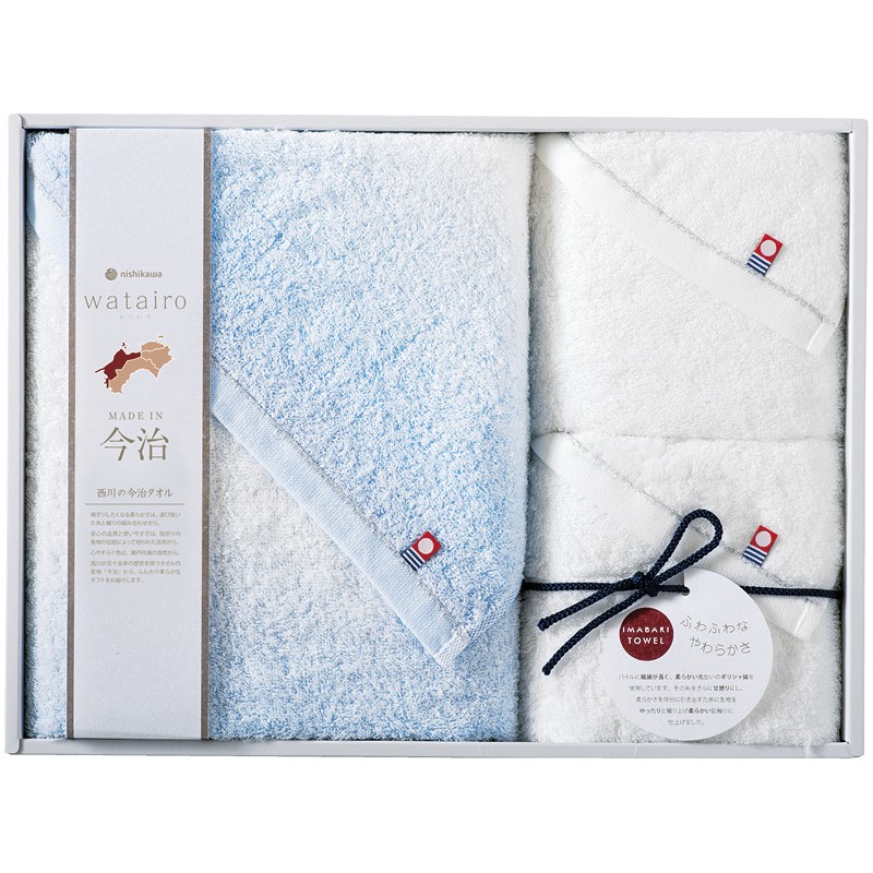 ”福利厚生 周年 卒業 記念品” 『わたいろ nishikawa今治タオル バスタオル&フェイスタオル2P ブルー』