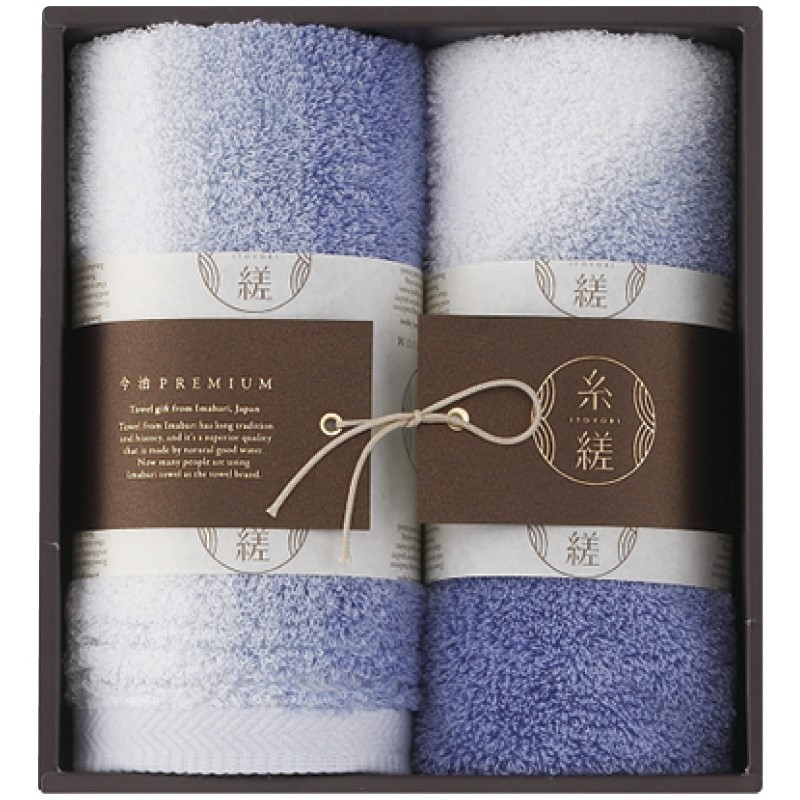 ”福利厚生 周年 卒業 記念品” 『糸縒 シェード フェイスタオル&ウォッシュタオル ブルー』