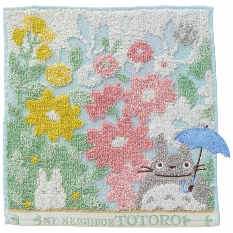 淡い色合いの可愛いトトロのミニタオル。傘のはみ出しアップリケがワンポイント!