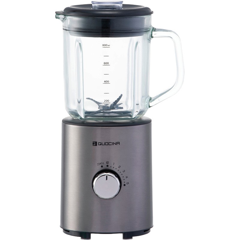 ●5段階のスピード調節が可能なハイパワーブレンダー。 速度別にスイッチ部分のLEDが点灯し、どのスピードなのか一目でわかります。 ●300Wのハイパワーモーターを搭載。素早くジュースを作る事ができます。 ●ブラックチタンコート刃を採用。氷も一緒にかく拌してスムージーなどもつくれます。 ●3~4人向けにピッタリの800mlガラスボトルを採用。キズがつきにくく汚れが目立たないので、 キレイに衛生的にご使用いただけます。 ●過熱防止の為、PTCヒューズを採用。安全にご使用いただけます。(※1) ●正しくセットしないと作動しない安全設計。万が一の事故を防ぎます。 ●本体二重構造の消音設計。(77db以下)