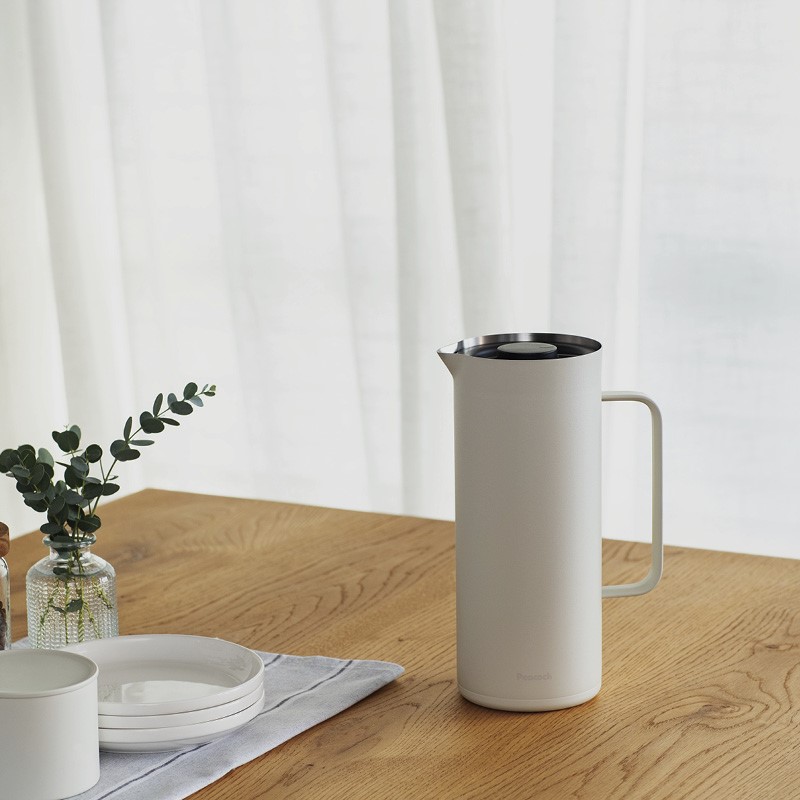 パーツが少なくお手入れしやすい構造。注水時はリブを注ぎ口に合わせて注ぐ。奥までお手入れがしやすい幅広口径約7.6cm。