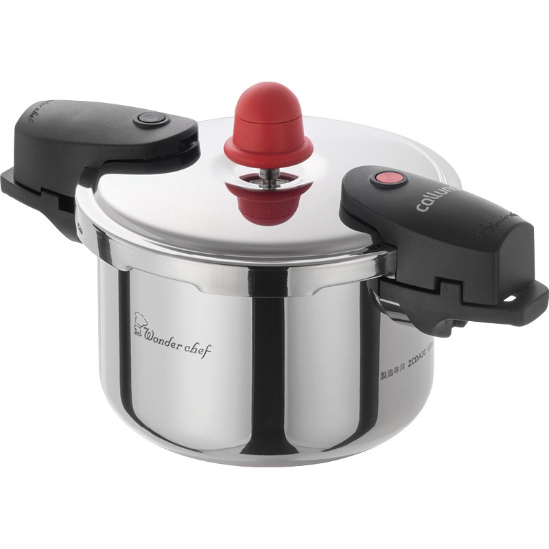軽くて使いやすい両手圧力鍋。焦げ付きにくい底三層構造で、ガスはもちろん、200V電磁調理器でもお使いいただけます。