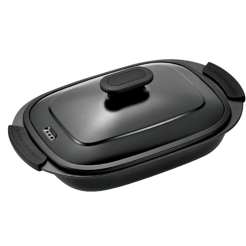 本体:鉄(アルミメッキ)(内面フッ素樹脂塗装、外面シリコーン焼付塗装)、蓋:鉄(アルミメッキ)(シリコーン焼付塗装)、ハンドル・ツマミ:シリコーンゴム