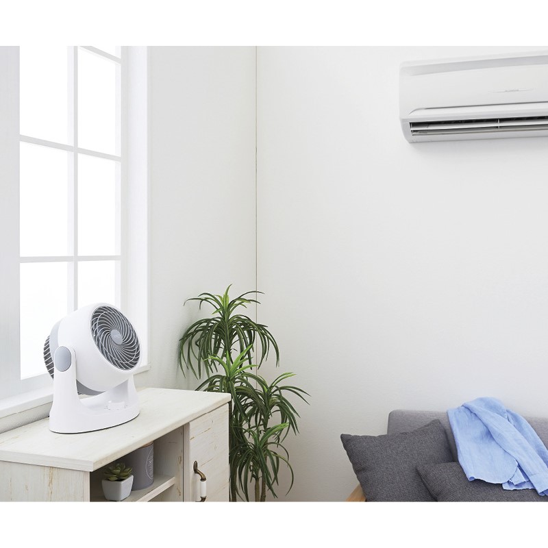 送風・換気と一年中お使いいただけます。エアコンと併用することで、夏は冷気を部屋全体に行きわたらせ、冬は暖かい空気を足元へと循環させます。窓を開けてご使用いただくと換気効率がアップします。素早く空気を入れ替えられるためウィルス対策にも。シンプルなデザインで、ご家庭だけでなくオフィスや工場などビジネスシーンでも違和感なくお使いいただけます。