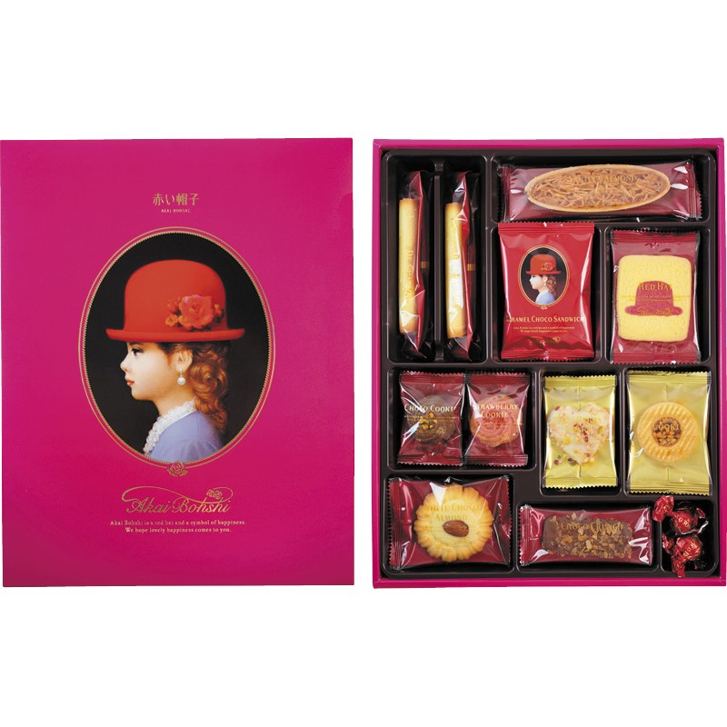 ホワイトボール×5、ラングドシャロール×4、ナッツベリーハート・バニラアーモンド・チョコクランチ・フロランタンクッキー×各3、ストロベリークッキー・チョコクッキー・キャラメルショコラサンド・レッドハット・ホワイトチョコアーモンド×各2