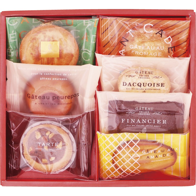 ダックワーズプラリネ・チーズカップケーキ・ガレット・マジパンケーキ・フィナンシェショコラ・プチタルトショコラ・リングフィナンシェいちご×各1