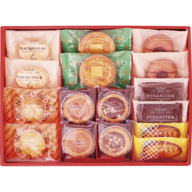 ダックワーズプラリネ・チーズカップケーキ・ガレット・マジパンケーキ・フィナンシェショコラ・プチタルト(いちご・ショコラ)・リングフィナンシェいちご×各2