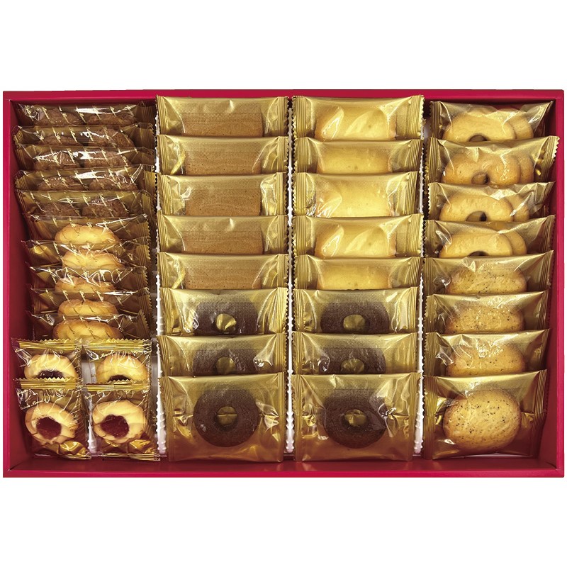 ココアリング×6、ラングドシャ・カフェラングドシャ・珈琲ココナッツ(2個入)・エスリング×各5、豆乳リング(2個入)・アールグレイ・ミニラズリン×各4