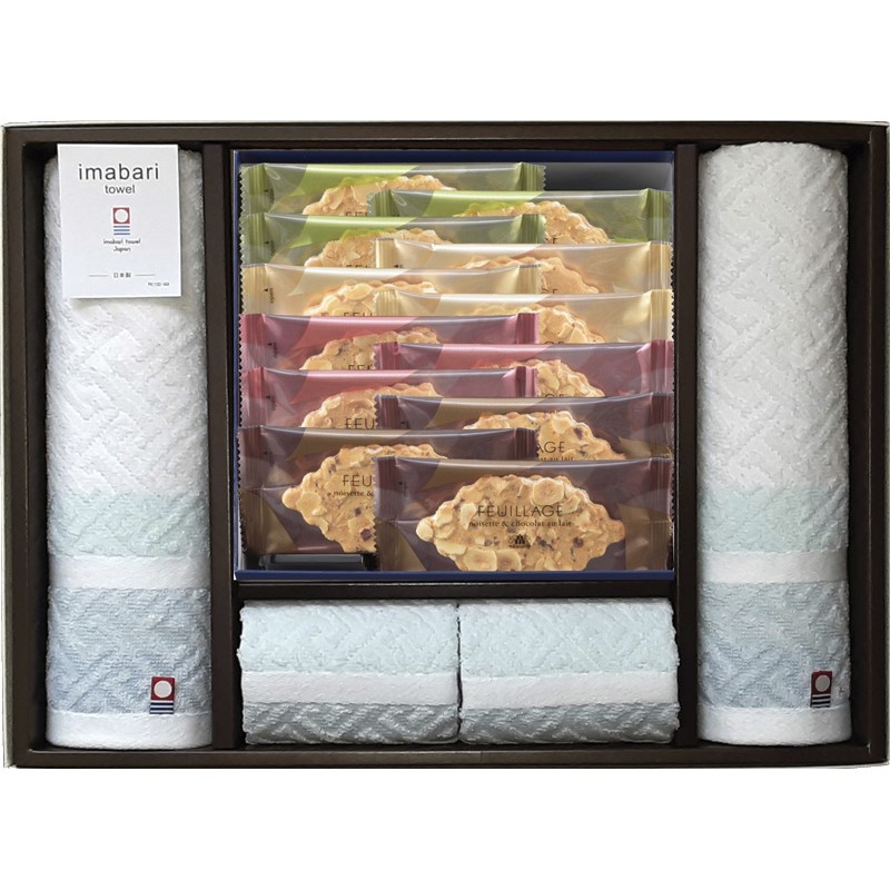 1931年、神戸トアロードのチョコレートショップから出発したモロゾフ。創業以来、おいしさと品質にこだわり続けています。木の葉のように薄く軽やかな生地にスライスナッツをしきつめてパリッと香ばしく焼き上げ、チョコレートを絶妙なバランスでサンドした人気のクッキーと、今治タオルのセットです。