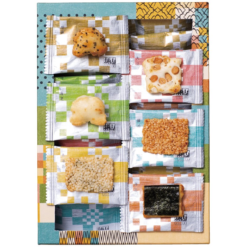 伝統工芸・寄木細工をアレンジしたモダンでカラフルなパッケージは、カジュアルながらも高級感があり、様ーな手土産に最適です。中には一口サイズのおかきを6種類詰合せました。