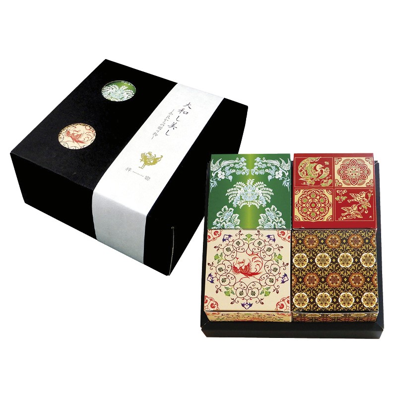 エキストラバージンオリーブオイルを使用したあられを、奈良東大寺の正倉院御物の文様をデザインした美しい箱に詰合せました。