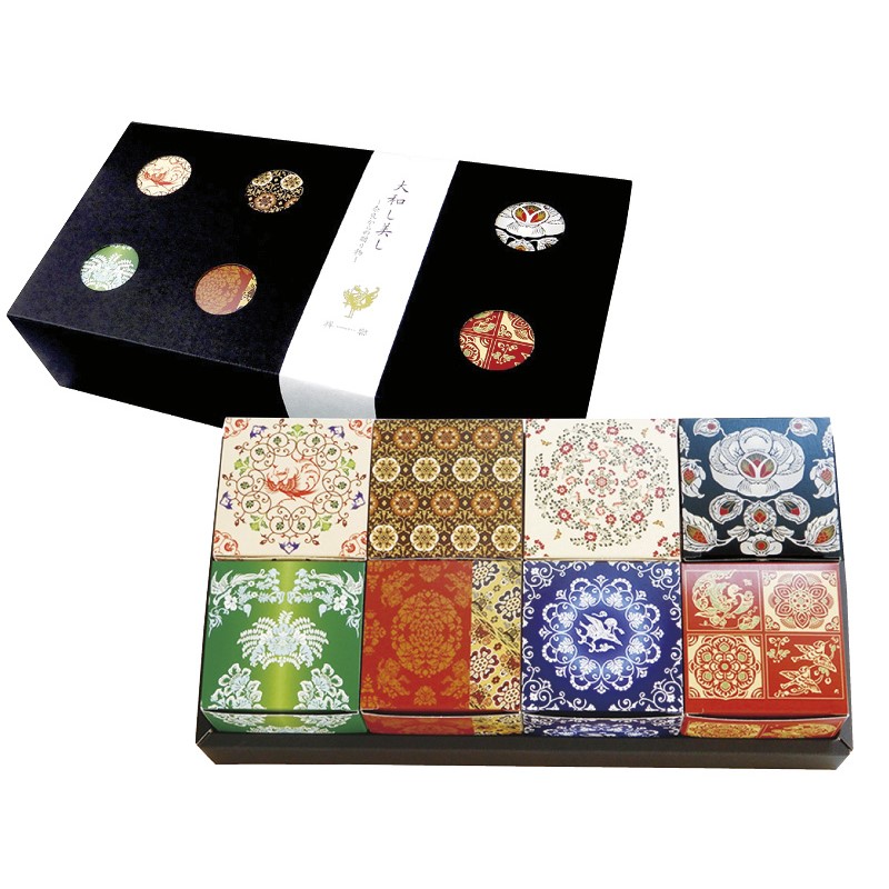 エキストラバージンオリーブオイルを使用したあられを、奈良東大寺の正倉院御物の文様をデザインした美しい箱に詰合せました。