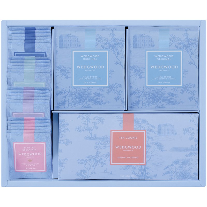 オリジナルドリップコーヒー(10g)・イングリッシュ ブレックファスト・アールグレイ・ウェッジウッドオリジナル・マハラジャダージリン(各2g)×各6、ティークッキーアソート(アップル・レモン)(各80g)×各1