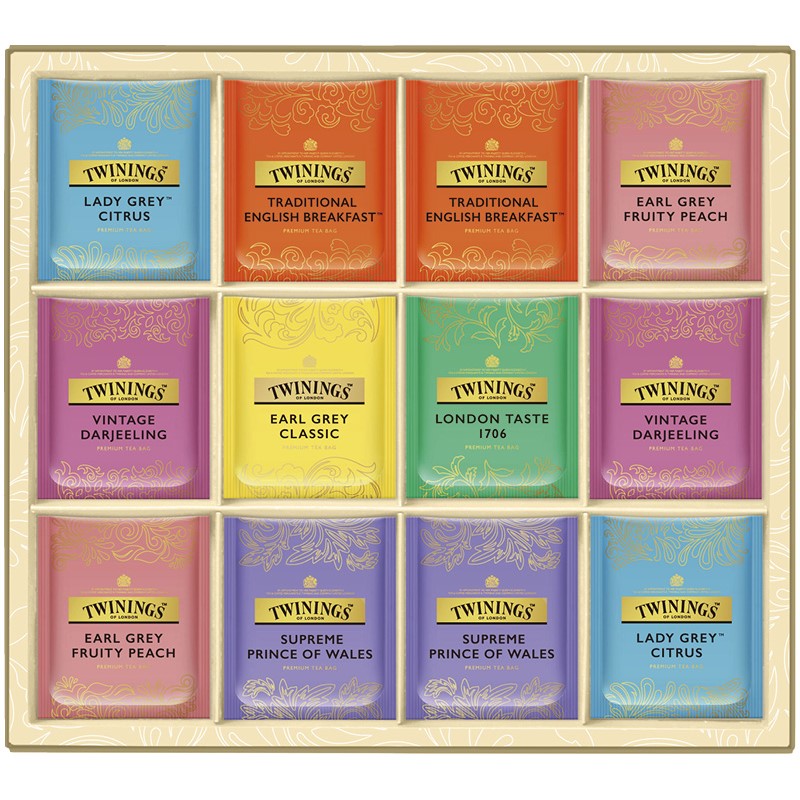 英国の気品を伝える、トワイニングのこだわりが詰まったティーバッグギフト。卓越した独自のブレンド技術から生まれたトワイニングの自信作です。有名産地の紅茶から、世界中で広く支持されるオリジナル ブレンドまで、バラエティ豊かに詰め合わせました。