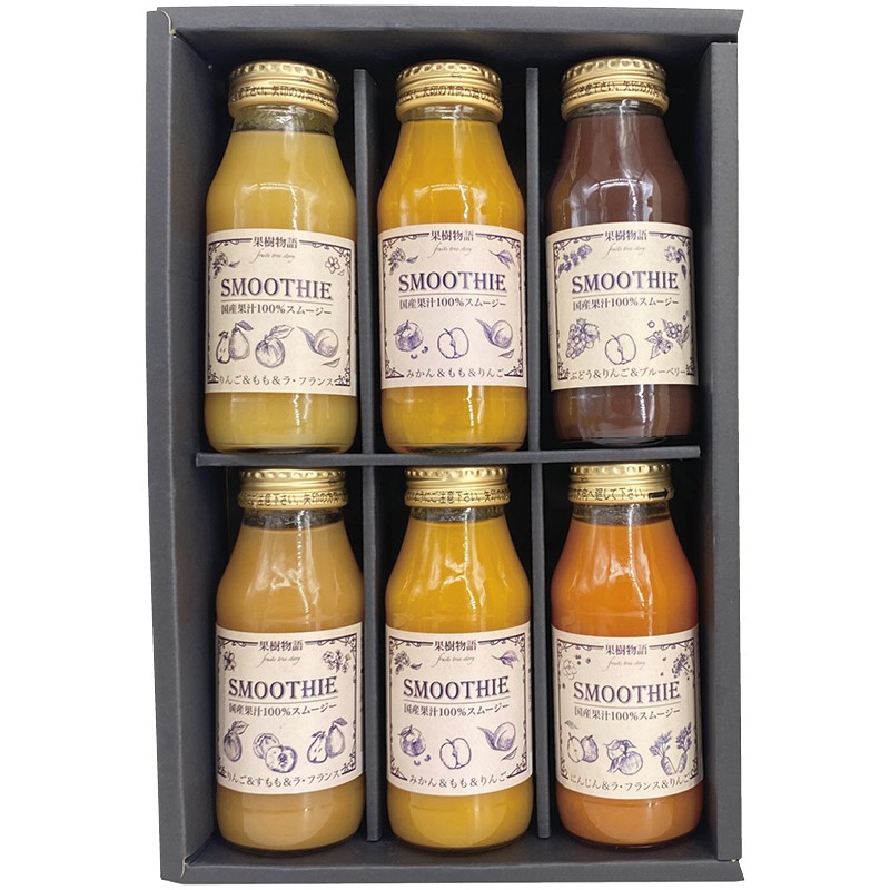 1本に3種類の国産素材を使用したストレート果汁・野菜汁100%のフルーツスムージー。 本物の味を知る果物農家がみずから選んだ全国の素材そのままの味を独自のノウハウでとじこめました。