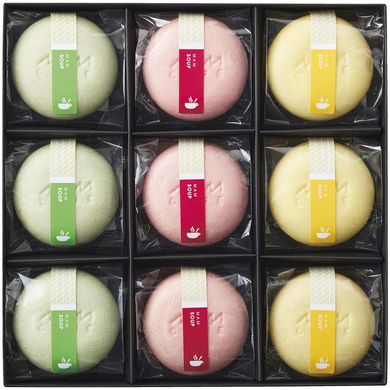 コーン・トマト・グリーンポタージュ×各3