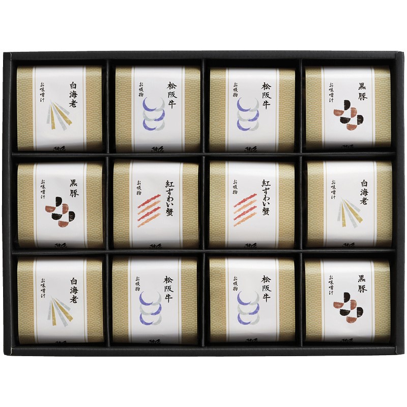 本格和風だしお吸物(松阪牛)×4、本格和風だしお味噌汁(黒豚・白海老)×各3、本格和風だしお吸物(紅ずわい蟹)×2