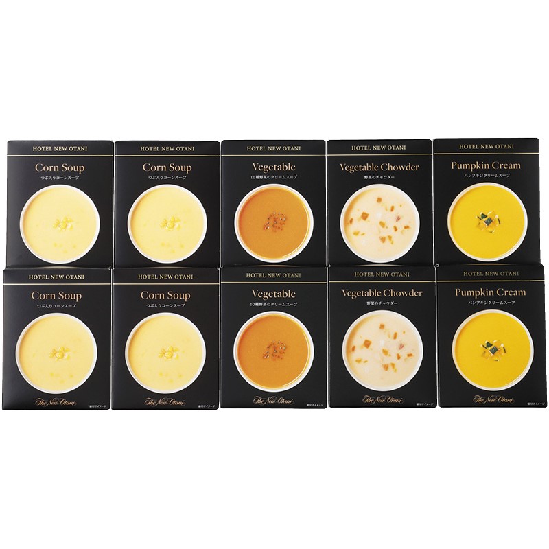つぶ入りコーンスープ(150g)×4、野菜のチャウダー・10種野菜のクリームスープ・パンプキンクリームスープ(各150g)×各2