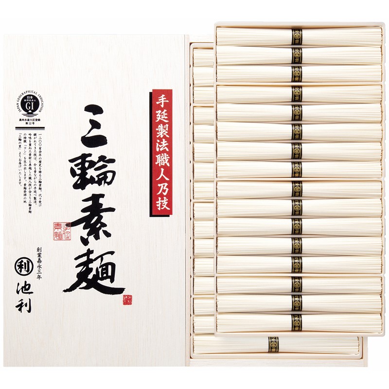 ”販促品 ノベルティ グッズ” 『池利 手延べ三輪素麺(木箱入)』