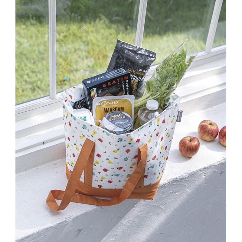 ビタミンカラーで元気がもらえそうなFruityFriendsシリーズ。内面はアルミ断熱シートでしっかり保温・保冷できて、アウトドアにも普段のお買い物にも役立ちます。