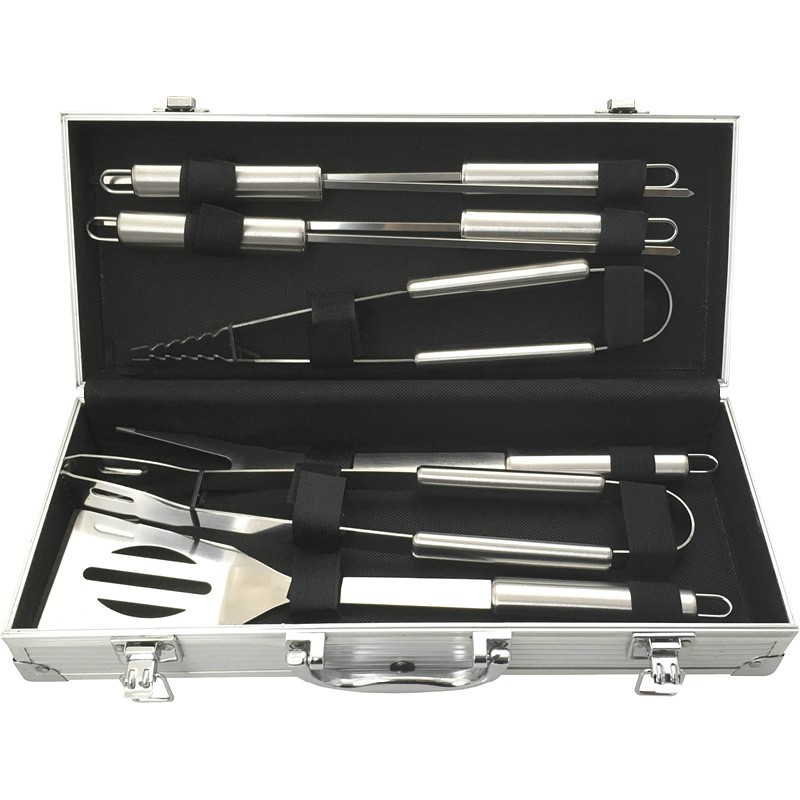 クールなアルミケースを持ってBBQを楽しめます。ガジェットはステンレス製で錆に強く衛生的です。