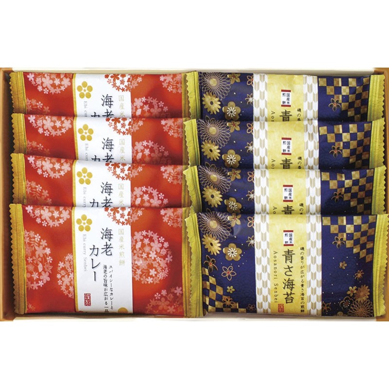青さ海苔煎餅・海老カレー煎餅×各4