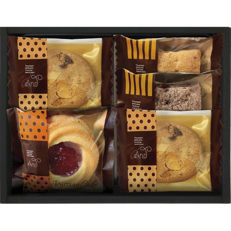 ナッツとチョコのざっくりクッキー×2、ロシアケーキ(ブルーベリーサン)・スクエアパイ(プレーン・ショコラ)×各1