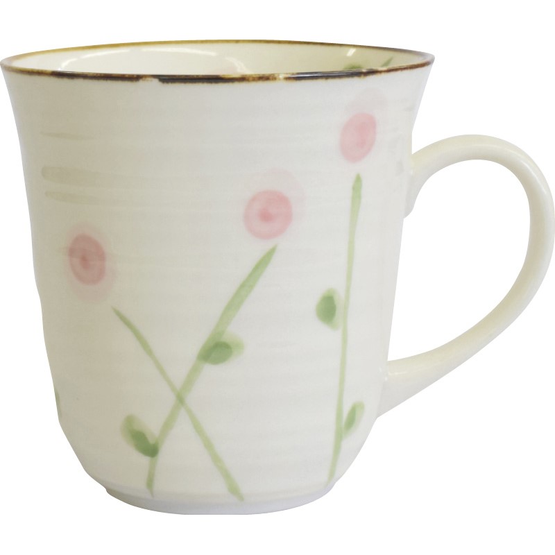 電子レンジに対応した使いやすいサイズのマグです。 落ち着いた柄なのでオフィスなどでもスッと溶け込みます。 柄は「リーフ」、「フラワー」の2柄からお選びください。