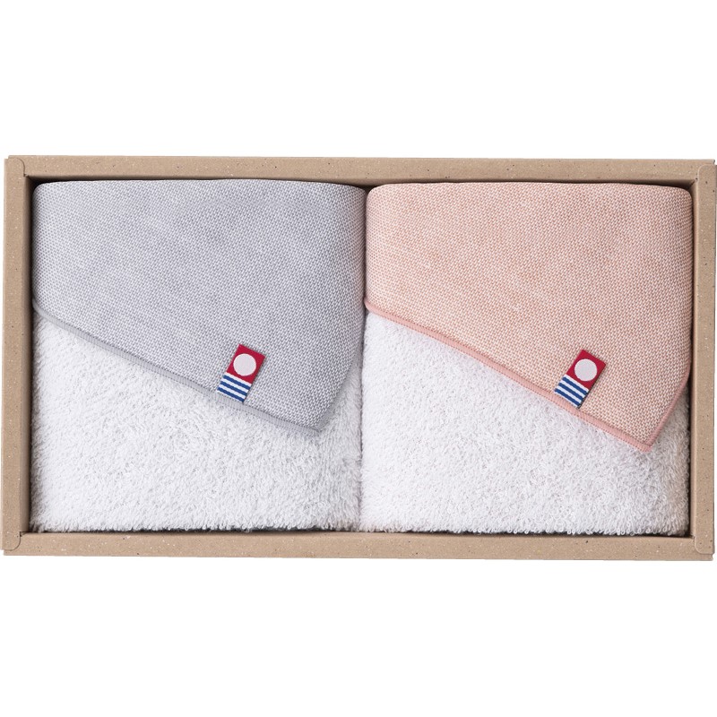 今治ガーゼ&パイルミニハンカチ2Pセット グレー・ピンク