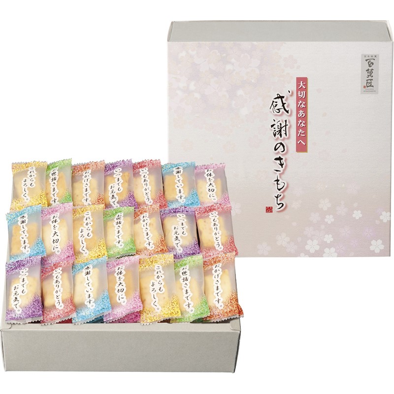 普段言葉では言い表せない「感謝のきもち」を、個包装にデザインしました。中身はソフトに焼き上げた上品な味わいは幅広い年代の方に召し上がっていただけます。