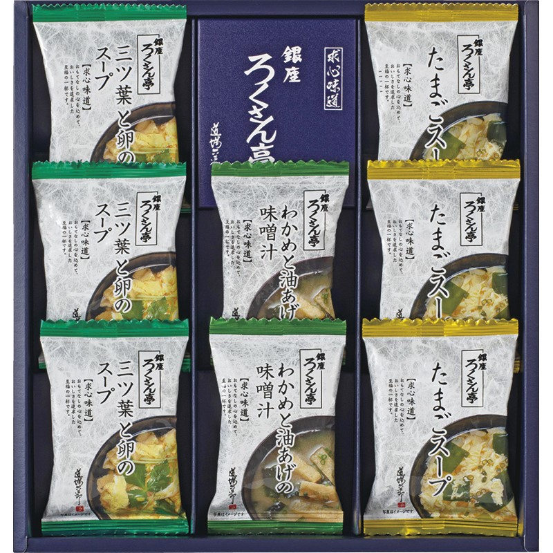 三ツ葉と卵のスープ・たまごスープ×各3、わかめと油あげの味噌汁×2