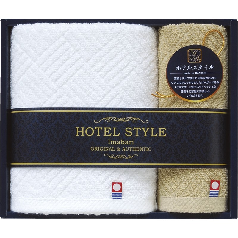 高級ホテルで使われるイメージでホテルタイプのタオルを作りました。 しっかりとした織の使い勝ってのいいタオルは、お風呂上りやヘアードライに最適なものとなっています。 また、上げ落ちによるジャガード織でシンプルで洗練されたイメージの仕上がりとなっています。白とゴールドとの組み合わせもベーシックでどんなシーンでも落ち着いた雰囲気を醸し出しています。スタイリッシュな贈り物としてお使いいただけます。