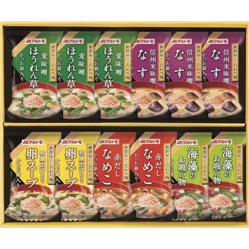 おだしの効いた本格的なみそ汁・スープ・お吸い物。サッとお湯を注ぐだけのフリーズドライギフト。