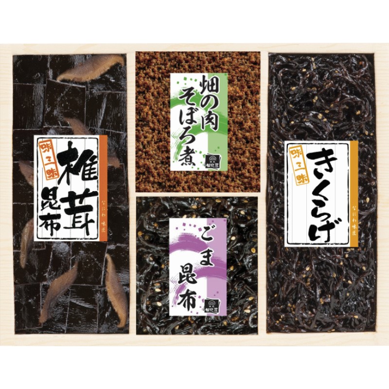 椎茸昆布・きくらげ(各70g)・畑の肉そぼろ煮・ごま昆布(各30g)×各1